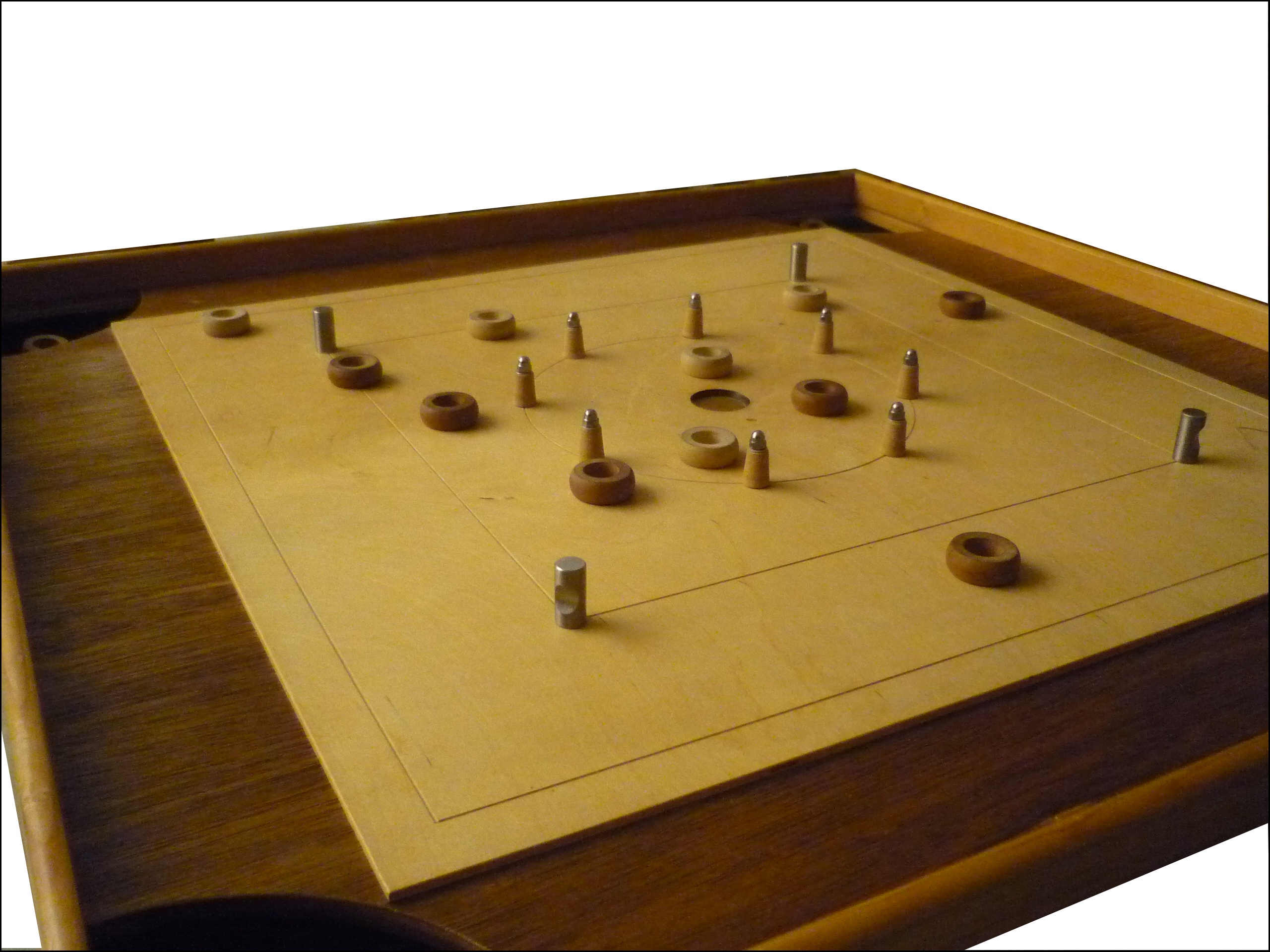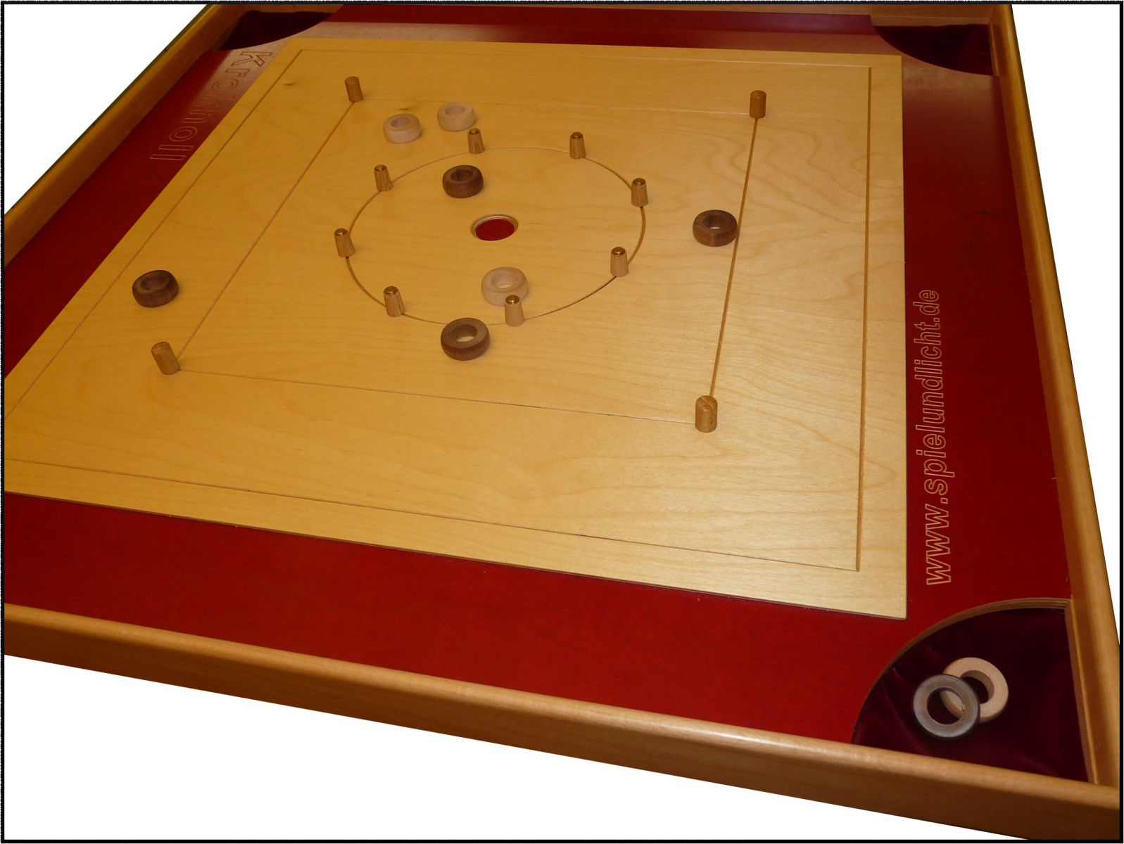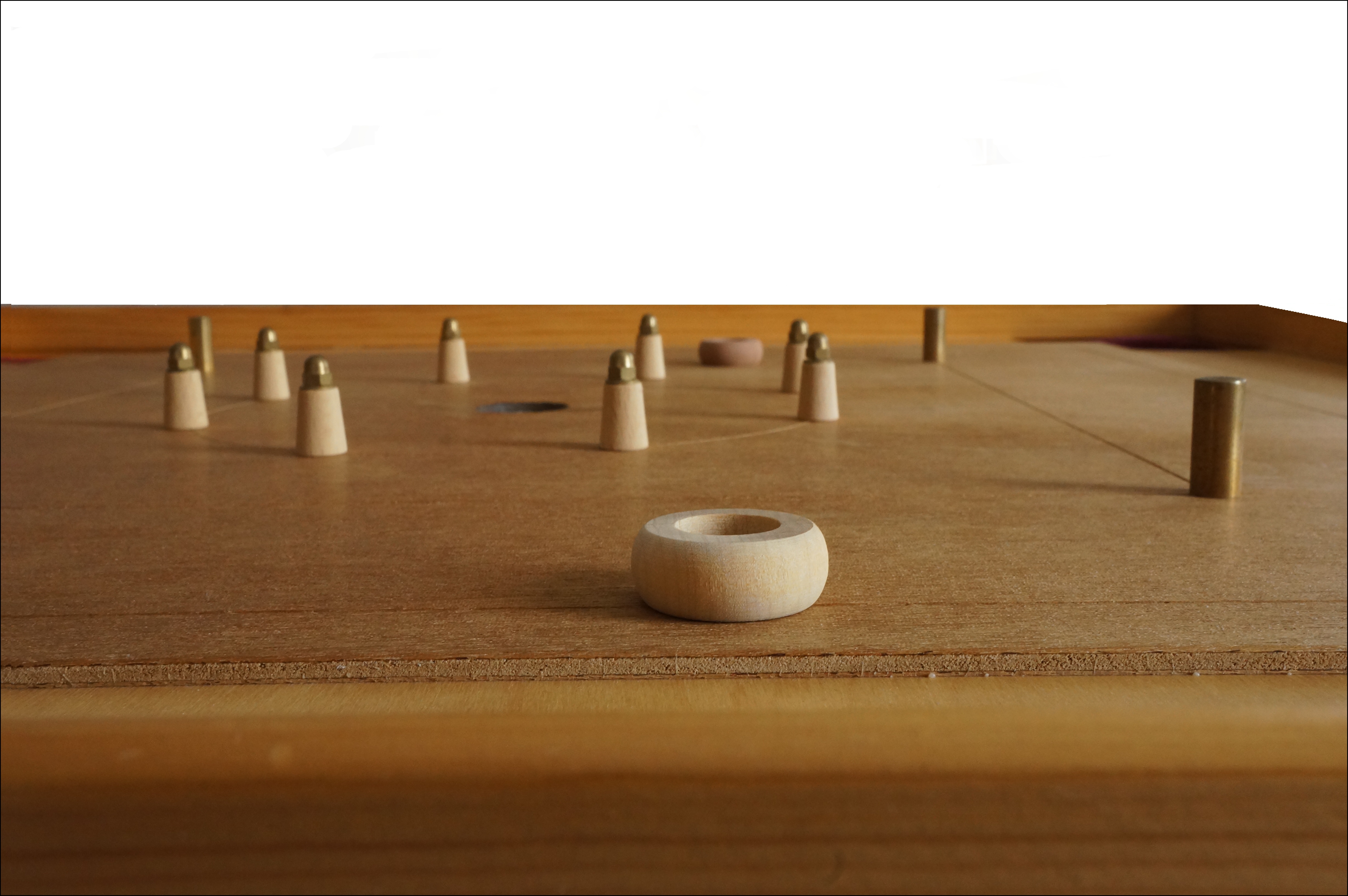 Es ist ein quadratisches Spielbrett von 70x70 cm, auf welchem zwei Spielparteien versuchen, ihre Ringe günstig zu platzieren, um am Ende einer Spielrunde eine hohe Punktzahl zu erreichen. Durch kleine Hindernisse wird das Spiel noch spannender, und es sind ein sensibles Händchen, Geschick und etwas Glück vonnöten.