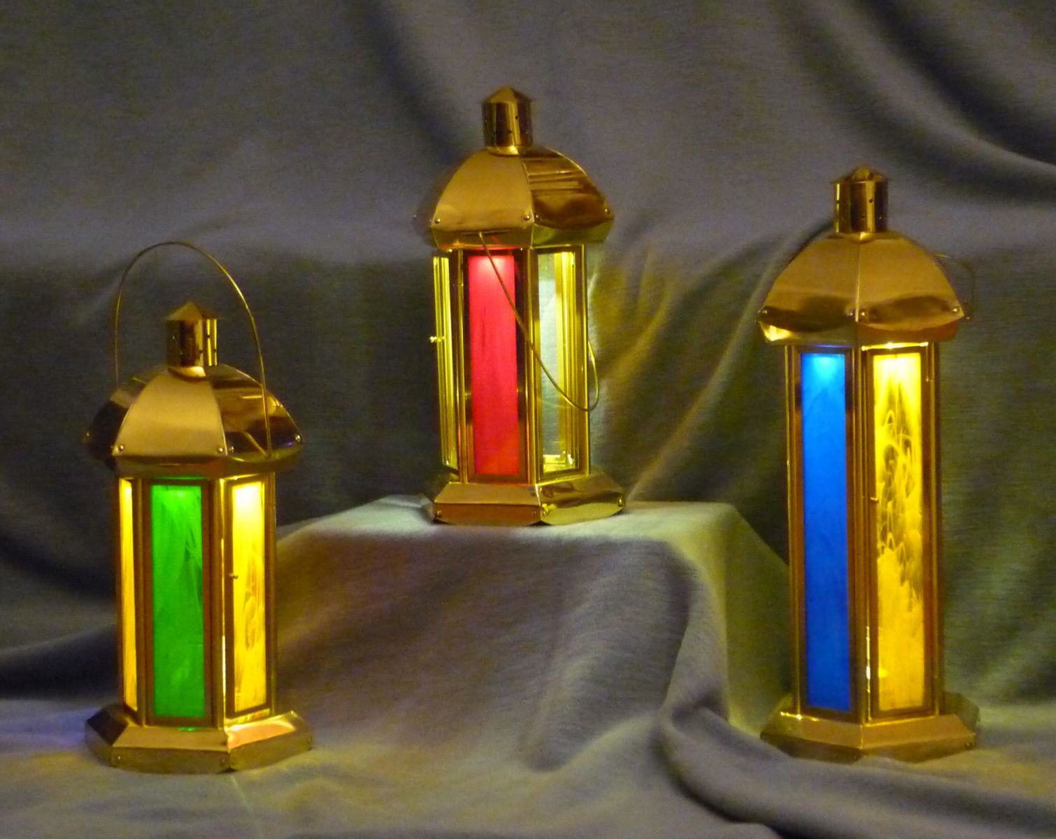 Handgefertigte Laternen aus edelstem Messing und Tiffanyglas für die romantische, stimmungsvolle Beleuchtung.